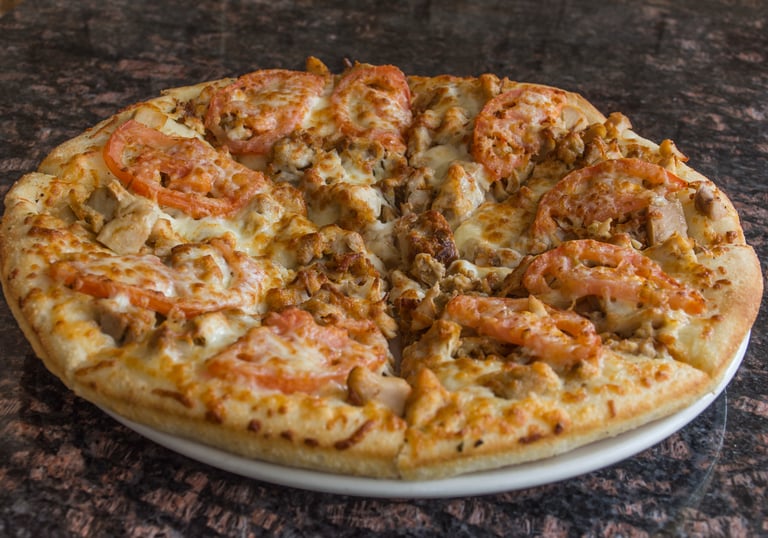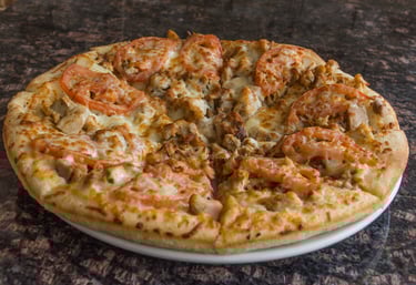 Hand-tossed pizzas topped with halal meat and fresh ingredients.